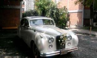 Automóvil Marca “Jaguar”, del año 1951, Color Blanco , Amplios Interiores en Piel color Miel.